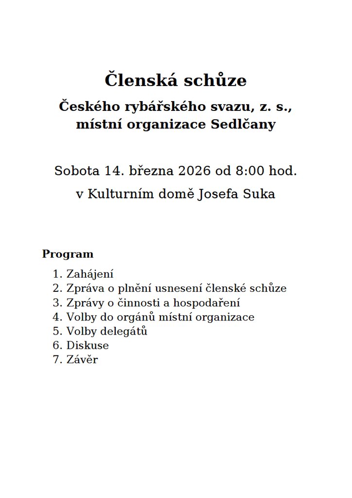 Rádi bychom proto požádali zájemce o činnost v orgánech místní organizace, aby se nám do konce února přihlásili, abychom je mohli zařadit na kandidátní listiny na členskou schůzi, která se bude konat 14. března 2026 od 8 hodin v Kulturním domě Josefa Suka.